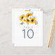 Une taille de 4,5 x 5,6 pouces semi-brillant poids 110 livres, qui est d'une épaisseur similaire à une carte postale, avec ONE par feuille. Fleurs sauvages et tournesols de style rustique sont au sommet au-dessus du numéro de table. Le même design se trouve également à l'arrière. Personnalisez facilement la typographie, elle changera automatiquement de l'autre côté aussi.