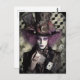 Collage inspiré d'Alice avec un chapelier généré par l'IA effectuant des tours de cartes magiques