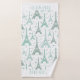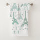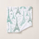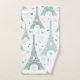 Tours Eiffel illustrées de gris turquoise et bleu/vert avec des coeurs dessinés à la main dans un motif répétitif. Personnalisez avec votre nom ou message dans la police correspondante.