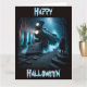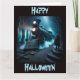 Le conducteur spectral vous demande votre billet alors que vous montez à bord du train fantôme dans la forêt noire hantée. Ajoutez votre propre texte personnalisé.
