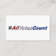 Les mots, All Votes Count, sont écrits dans les couleurs rouge, blanc et bleu, et sont soulignés en noir, et imprimés en carte de visite. Les conseils de vote sont imprimés sur le dos. Il y a un hashtag noir qui précède les mots, All Votes Count, pour encourager les gens à utiliser cette phrase pour aider à changer le processus de vote aux Etats-Unis, où tous les votes comptent. Merci pour faire du shopping à CherylsArt sur Zazzle.