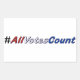 Les mots, All Votes Count, sont écrits dans les couleurs rouge, blanc et bleu, et sont soulignés en noir, sur les autocollants. Il y a un hashtag noir qui précède les mots, pour encourager les gens à commencer à utiliser cette phrase pour aider à changer le processus de vote aux Etats-Unis, où tous les votes comptent. Merci pour faire du shopping à CherylsArt sur Zazzle.