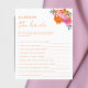 Ajoutez du plaisir à votre événement avec ce jeu All Eyes on the Bride Bridal shower, avec des oeuvres florales roses et oranges vibrantes et un design ludique. Parfait pour les douches nuptiales, les wedding showers ou les soirées bachelorette, ce jeu lumineux d'inspiration jardin teste la mémoire des invités de ce que la mariée porte. Une activité ludique et interactive pour une fête estivale ou à thème floral.