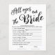 Tous les yeux sur la Bride Simple Bridal Game - voici celui du jeu de douche nuptiale commun pour faire de vos invités un bon moment. Comme il est préparé en tant que modèle, vous pouvez le personnaliser selon vos souhaits/besoins. POUR PLUS DE JEUX AVEC LE MÊME DESIGN écrire G317 dans la boîte de recherche de ma boutique. Merci de visiter ma boutique. En coque, vous avez besoin de quelque chose sur le design être libre de me contacter : szdesigns2021@gmail.com