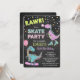 Cute Girl Dinosaur Parties scintillant Anniversaire Patinage Partie Chalk Chalkboard Invitation