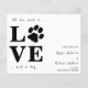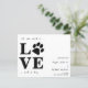 Tout Ce Dont Vous Avez Besoin, C'Est De L'Amour Et Un Chien ! Inclure votre meilleur chien dans votre faire-part mariage avec ce super mignon 'LOVE' avec un chien animal de compagnie empreinte de patte enregistrer les cartes de date. Customisez avec vos nom, date et emplacement du mariage. Ce mariage de chien, sauf la date faire-part sera un succès avec votre famille et vos amis. DROIT D'AUTEUR © 2020 Judy Burrows, Black Dog Art - Tous droits réservés. Tout Ce Dont Vous Avez Besoin Est Love Chien Enregistrer La Carte Postale Date
