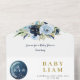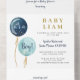 Ballons bleu marine et baby shower fleuri invitation garçon