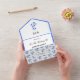 An all-in-one wedding invitation card with beautiful bluebell flowers. The images, background and text are customizable. Original artwork by W.B.
