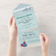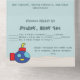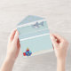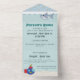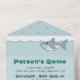 Cette invitation tout-en-un à thème de bain avec carte RSVP amovible dispose d'un motif orné d'étoiles de mer qui ressemble à un mur de salle de bain avec un bord de baignoire blanche et le haut de l'eau ondulante qui passe à un fond sablonneux de la façon dont l'imagination d'un enfant peut transformer le banal et tous les jours en une aventure extraordinaire. Au-dessus de cette scène se trouvent un requin gris souriant, un sous-marin rond et ludique aux couleurs primaires, un exemple de texte ondulé à l'intérieur qui peut être customisé pour votre événement, et un espace vide à l'extérieur qui peut être utilisé pour adresser les cartes au destinataire et à la section retournable avec l'adresse de retour appropriée. N'oubliez pas de consulter la collection complète de Bath Time Fagues pour plus de cadeaux et de produits pour un baby shower ou le petit dans votre vie.