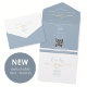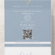 The main invitation panel showcases clean typography on a soft dusty blue background, with a delicate gold rope heart symbol to highlight love and connection. Your wedding website and QR code for quick RSVP make the entire process fast and effortless for your guests.