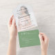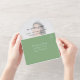 Fond de photo vert sauge Invitation à l'événement RSVP. Il s'agit d'une invitation élégante et charmante avec une carte RSVP perforée qui permettra à vos invités de répondre facilement à votre célébration incroyable ! Vos invités peuvent déchirer la carte le long de la ligne perforée, remplir les informations, la timbrer et la déposer dans leur boîte aux lettres sortante ! Des articles assortis sont également disponibles dans notre magasin.