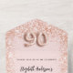 Fond couleur rose gold et blush, décoré de scintillements de fausse brillance à l'intérieur. Personnalisez et ajoutez une photo, des noms, des détails de la fête, la date de réponse, l'adresse de retour et le nom. Le numéro 90 est écrit avec un numéro de style ballon.