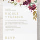 Apportez de la couleur et du charme à votre mariage avec ce All In One Faire-part de mariage, avec des bouquets d'aquarelle fleuris en violet, bordeaux, pêche et rose, accentués de verdure douce. Ce design s'applique à merveille aux mariages romantiques, aux cérémonies d'automne ou à toute célébration à thème floral riche. Le mélange de tons chauds et cool apporte de la profondeur sans se sentir trop formel, et la typographie moderne épurée maintient l'aménagement frais. À l'intérieur, le texte en feuille d'or ajoute une finition polie qui cravate tout ensemble. Vous pouvez le personnaliser avec vos noms, date et détails mariages. C’est un design coloré et élégant qui reflète votre style tout en donnant un aperçu de la célébration à venir.