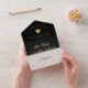 Informal all in one wedding invitation in black, white and gold foil with a charming brush script and romantic heart details with fonts in gold foil against a black background and in black against a white background. Practical RSVP card attached!