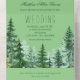 Cartes d'invitation de mariage au sapin avec une belle forêt de sapins à l'aquarelle sur un fond de couleur à choisir. Ces magnifiques invitations de mariage rustiques au sapin sont facilement personnalisables pour votre événement en ajoutant simplement vos détails dans le style de police et la formulation de votre choix.
