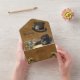 Sculptures Steampunk en or et laiton sur suede avec un cadre à texture de cuir et sculptures steampunk et chapeaux pour le couple de mariés.