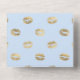 Invitation de mariage à l'aquarelle avec des accents de bleu bébé et de doré faux brillant avec un motif de lèvres baisant fantaisiste au verso.