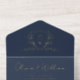 Tout En Un Invitation Élégant Crest Monogramme Script Mariage bleu