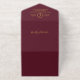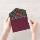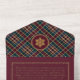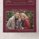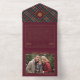A luxurious blend of dark cranberry red and real gold foil sets a tone of timeless elegance, beautifully contrasted by a rich, classic plaid on the top inside flap in shades of dark cranberry red, dark teal green, and deep navy, subtly accented with faux gold threads along with a simple foil snowflake encased in a double circle. Simple holly and berries motifs framed in a refined rectangular border adds a traditional touch to the front center—creating a striking yet understated Christmas letter that’s ready to shine with your personal details. The bottom features your single photo along with your seasonal greeting, the year and name(s) in foil. The outside (back) features a repeat of the dark cranberry red background overall background and faux gold text to coordinate with the inside. Your return address is accented by an emblem created with the holly motif and your monogram initial in center. Perfect for your holiday gatherings from personal to corporate celebrations.