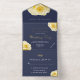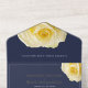 Elégante Rose Jaune Florale Mariage Or Foil Tout en une invitation. Une invitation élégante aux belles roses jaunes. Invitation à l'ensemencement et facile à arracher la carte postale perforée RSVP - tout en un. Plier la carte, sceller et envoyer - aucune enveloppe nécessaire. Vous pouvez facilement customiser tout le texte.