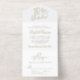 Élégante invitation tout-en-un blanche de 70e anniversaire avec "70 & Fabulous" et le nom de l'honoré présenté dans des scripts de calligraphie chic, les détails de votre fête dans la lettrage moderne, et une carte postale RSVP déchirante pour une réponse facile sans enveloppe de vos invités. Tout le texte à l'intérieur de l'invitation est rendu dans votre choix d'or, d'argent ou d'or rose authentique feuille.