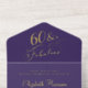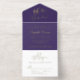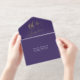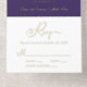 Élégante invitation violette tout-en-un pour 60e anniversaire avec "60 & Fabulous" et votre nom dans des scripts de calligraphie chic, vos détails de fête en lettres simples, et une carte postale RSVP déchirante blanche pour une réponse facile sans enveloppe de vos invités. Tout le texte à l'intérieur de l'invitation est rendu dans votre choix d'or, d'argent ou d'or rose authentique feuille.