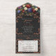 Tout En Un Invitation Foil Leaf Frame Quinceanera - Black/Floral Bouquet