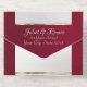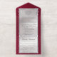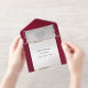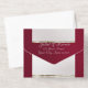 This elegant All In One wedding invitation features a silver pearl center on a burgundy background, an ornate frame and scroll heart with bride & groom's names in foil. Designed to coordinate with the "Ornate Frame & Hearts" Wedding Collection. To change details, click «Personalize». To move the text or change the text size, font, or color click «Click to customize further»