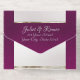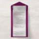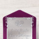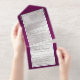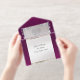 This elegant All In One wedding invitation features a silver pearl center on a plum background, an ornate frame and scroll heart with bride & groom's names in foil. Designed to coordinate with the "Ornate Frame & Hearts" Wedding Collection. To change details, click «Personalize». To move the text or change the text size, font, or color click «Click to customize further»