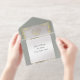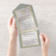 This elegant All In One wedding invitation features a silver pearl center on a sage background, an ornate frame and scroll heart with bride & groom's names in foil. Designed to coordinate with the "Elegant Marble, Gold Leaves Frame & Scroll Heart" Wedding Collection. To change details, click «Personalize». To move the text or change the text size, font, or color click «Click to customize further»