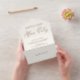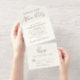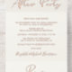 Élégant elopement crème légère ou petit faire-part mariage et réception post-mariage invitation tout-en-un avec "Happily Ever After Party" présenté dans un mélange de lettrage simple et un script moderne chic, votre faire-part de mariage et d'accueil, et une carte postale réponse RSVP déchirante, le tout rendu dans votre choix d'or, argent ou feuille d'or rose.