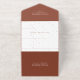 Élégant elopement en terre cuite ou petit faire-part mariage et réception post-mariage invitation tout-en-un avec "Happily Ever After Party" présenté dans un mélange de lettrage simple et un script moderne chic, votre faire-part de mariage et d'accueil, et une carte postale réponse RSVP déchirante, le tout rendu dans votre choix d'or, argent ou feuille d'or rose.