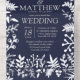 Tout En Un Invitation Mariage floral bleu marine et véritable huile d'ar