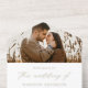 Partagez votre histoire d'amour avec cette élégante faire-part de mariage tout-en-un, avec votre photo de fiançailles en haut et vos noms et détails mariages en feuille dorée chatoyante. Les accents de script de calligraphie moderne et un arrière - plan blanc créent un look intemporel et sophistiqué. Le design pratique comprend une carte postale RSVP détachable que vos invités peuvent facilement envoyer par la poste. Conçu pour coordonner avec notre collection de mariages Modern Elegance.