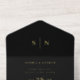 These elegant, modern dark black wedding all-in-one invitations feature a simple text design in real gold foil (on the inside of the card) that exudes minimalist style. Add your initials or monogram to make them completely your own. A detachable rsvp card is included, which serves as both a combo traditional rsvp your guest can return, as well as a QR code for those who prefer to rsvp online instead.
