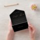 Invitación de boda todo en uno en elegante color negro, con texto en dorado metálico prensado que resalta “Nuestra Boda” y los nombres de los novios. Incluye una tarjeta RSVP desprendible en la parte inferior. Un diseño moderno y práctico, completamente en español.