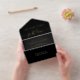 Élégant elopement noir ou faire-part mariage privé et réception décontractée le tout dans une invitation avec "Nothing Fancy Just Love" présenté en lettres simples et un script chic avec des swashes, votre faire-part de mariage et d'accueil, et une carte postale réponse RSVP déchirante, le tout rendu dans votre choix de feuille d'or véritable or, argent ou rose.