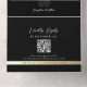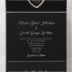 Partagez vos détails mariages dans un style élégant avec ce monogramme d'or et noir tout-en-un faire-part de mariage. Doté d'un coeur romantique de cordes d'or, d'initiales personnalisées, d'un arrière - plan noir élégant et d'un code QR scannable pour des RSVP faciles, ce design allie confort moderne et sophistication intemporelle. Parfait pour les couples à la recherche d'une suite mariage design et épurée.