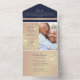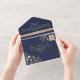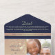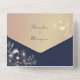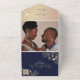 Célébrez votre mariage avec style grâce à cette élégante invitation de mariage tout-en-un rose gold et bleu marine. Dotée d'accents floraux luxueux rose gold, d'un fond bleu marine et d'une section photo personnalisable, cette création écologique est parfaite pour les couples recherchant une touche sophistiquée et personnelle. Personnalisez facilement avec vos informations.