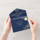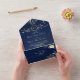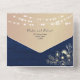 Donnez le ton à votre célébration romantique avec cette faire-part de mariage tout en un bleu marine rustique. Conçu avec des lampes à cordes brillantes, des accents floraux dorés délicats et une calligraphie élégante, il comprend une carte RSVP intégrée et une enveloppe de coordination. Idéal pour les mariages d'automne ou d'hiver, les salles de grange ou les soirées douillettes.