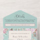 Cette faire-part de mariage tout-en-un romantique présente des fleurs d'aquarelle douces dans des tons rose vif, rose poussiéreux et vert sauge, avec une typographie élégante et un motif de coeur de corde argentée. Le format pliant comprend une carte RSVP détachable et un panneau photo sur le dos pour une touche personnelle. Conçu pour le confort et le charme, cette invitation est parfaite pour les mariages de jardin, les fêtes de printemps ou d'été, ou les couples qui aiment les thèmes floraux avec commodité moderne. Remarque : Cette invitation tout-en-un nécessite une enveloppe distincte pour l'envoi. Nous vous recommandons de l'apparier avec une enveloppe A9 standard (5,75 po x 8,75 po) pour un meilleur ajustement.