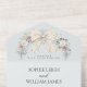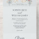 With this all-in-one template, you can easily include all essential wedding details—from the couple’s names and date to venue, RSVP, and more—on a single, cohesive design. The neutral palette, accented with white roses, eucalyptus, and pinecones, adds a romantic seasonal touch perfect for winter weddings, holiday nuptials, and seasonal celebrations.