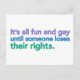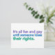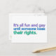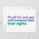 Le texte dit : "Tout est amusant et gay jusqu'à ce que quelqu'un perde ses droits." en violet, bleu et vert.