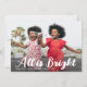 ALL IS BRIGHT, moderne simple script blanc joyeux carte photo de noël, personnalisez l'image et le texte de vacances.