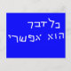 Tout est possible écrit en hébreu sur une carte postale bleue