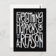 "Tout se passe pour une raison". Un grand dicton à utiliser comme encouragement ou motivation ou une note positive à envoyer à quelqu'un qui surmonte des problèmes ou qui fait face à des défis.