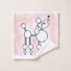 Une flanelle de serviette de toilette avec une illustration de caniche snooty. Un poodle stylisé avec des poms de pom et un pout sur un arrière - plan rose poudreux.