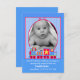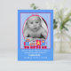 Carte photo de bébé personnalisé coloré en bleu avec une jolie zone photo décorée d'un train choo rouge, bleu, jaune et vert. Idéal pour envoyer à vos amis et à votre famille la première photo de votre nouveau bébé. Le texte personnalisé blanc est prêt à être personnalisé avec toutes vos informations.