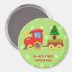 Premier Noël de bébé, train de jouets coloré portant un arbre de Noël décoré.