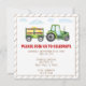 Aquarelle vert roux tracteur garçon 1er ou 2e anniversaire invitation.
